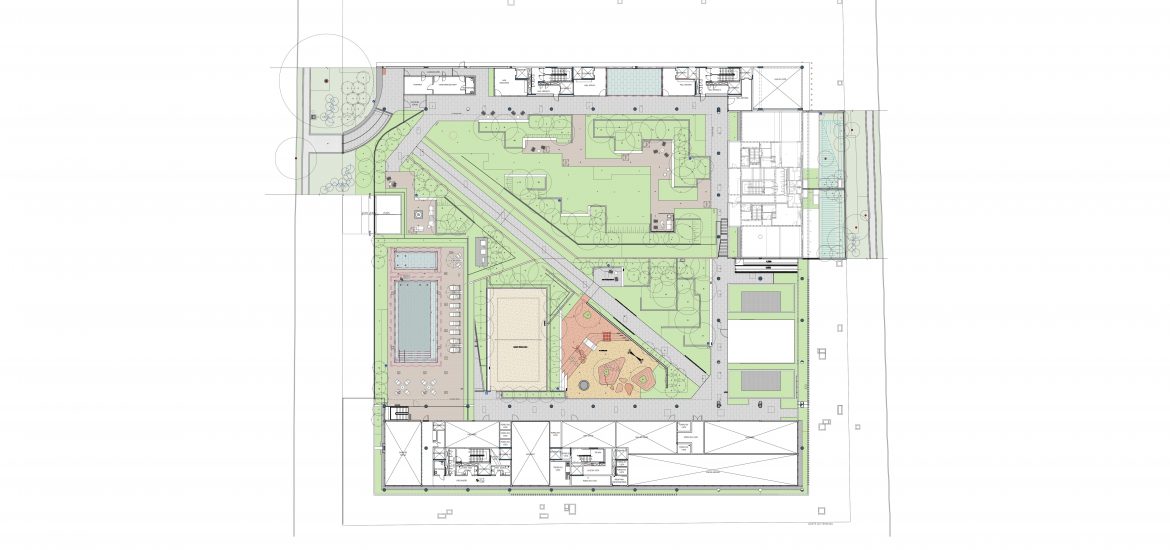 Além das opções de descanso e lazer, os espaços esportivos e de recreação tiveram soluções integradas, para crianças, jovens e adultos, adicionando experiências estimulantes e prazerosas. Paisagens criadas com afeto agregam qualidades lúdicas e poéticas às experiências do cotidiano, proporcionando momentos de reflexão sobre o que acontece à nossa volta. É através deste olhar cuidadoso sobre a construção do espaço externo, que buscamos sensibilizar pessoas e a forma como se relacionam com a natureza.